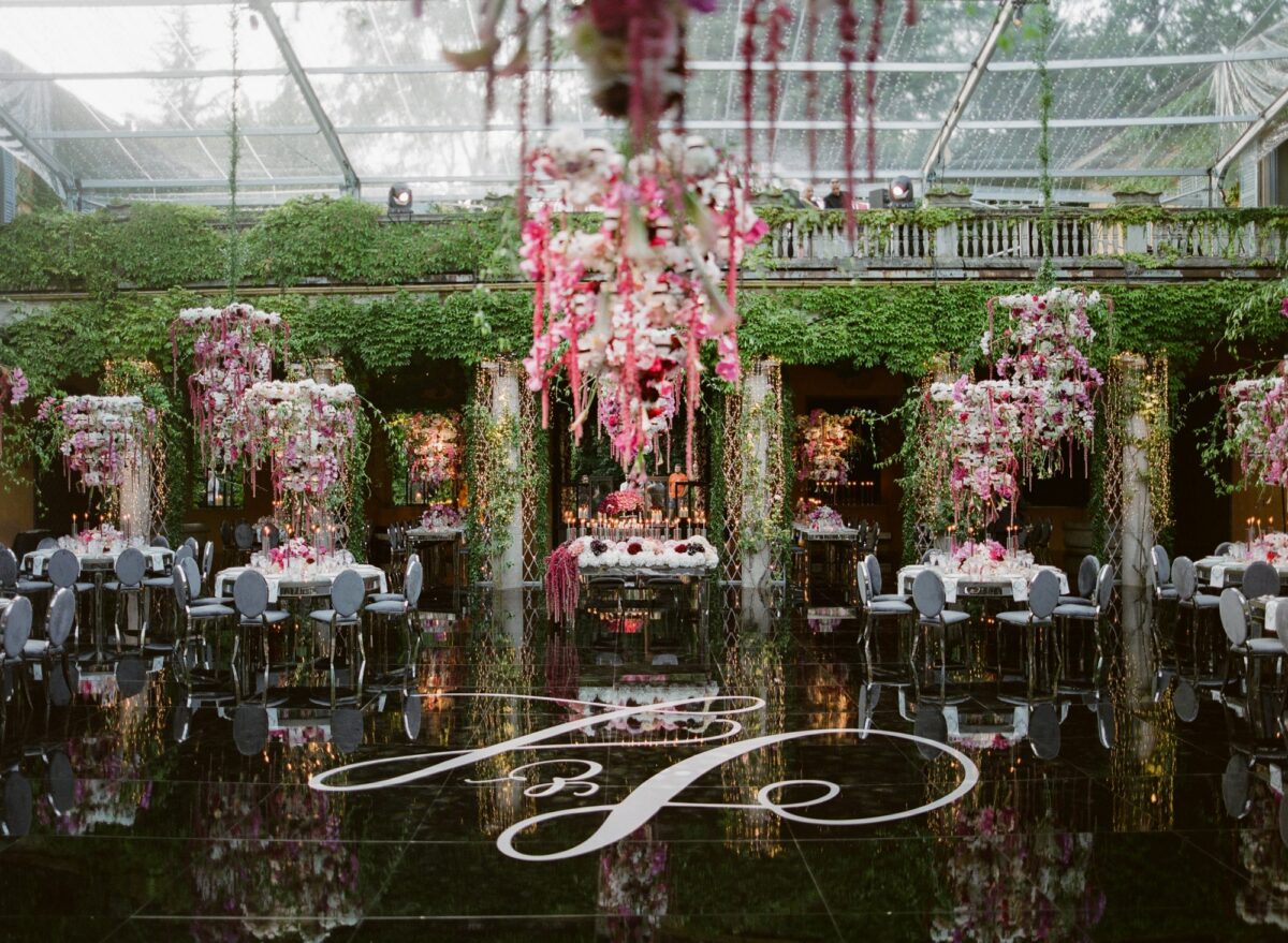 Dancing can be held outdoors until midnight, after which the party can move inside the villa's ballrooms on the ground floor.